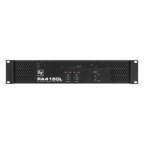 Amply 4 kênh 150 W/CH Electro-Voice PA4150L thuộc dòng PA của bộ khuếch đại âm thanh thương mại chuyên nghiệp. Thiết kế luồng không khí đường dẫn trực tiếp giúp giảm đáng kể sự tích tụ nhiệt và cho phép 4 kênh khuếch đại đầy đủ trong khung không gian hai giá đỡ mỏng. Hiệu suất âm thanh của PA4150 vượt trội và đáp ứng các yêu cầu trong nhiều ứng dụng đòi hỏi khắt khe lâu dài từ việc cài đặt tăng cường âm thanh, phân trang hoặc an toàn cuộc sống.