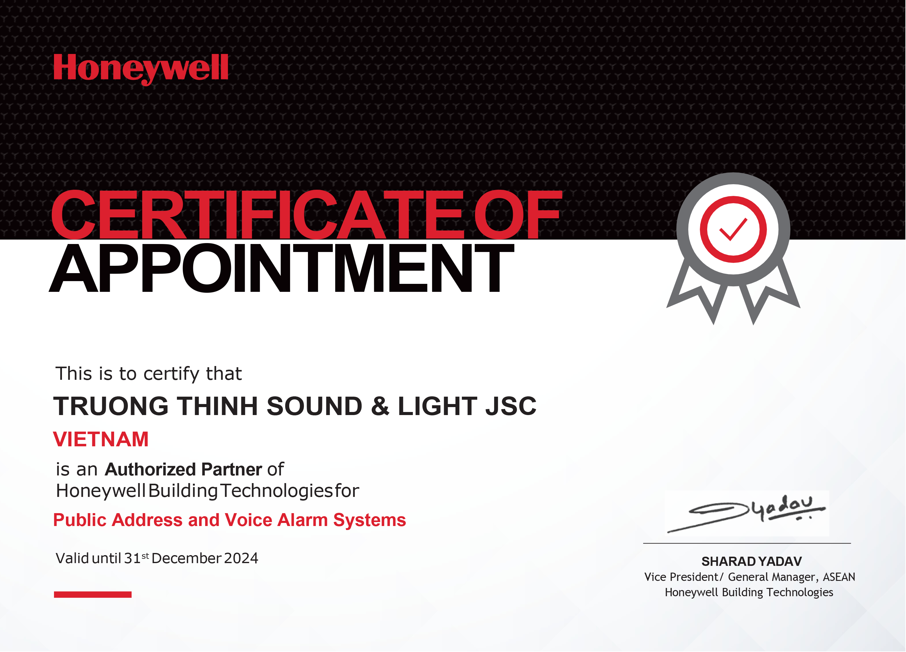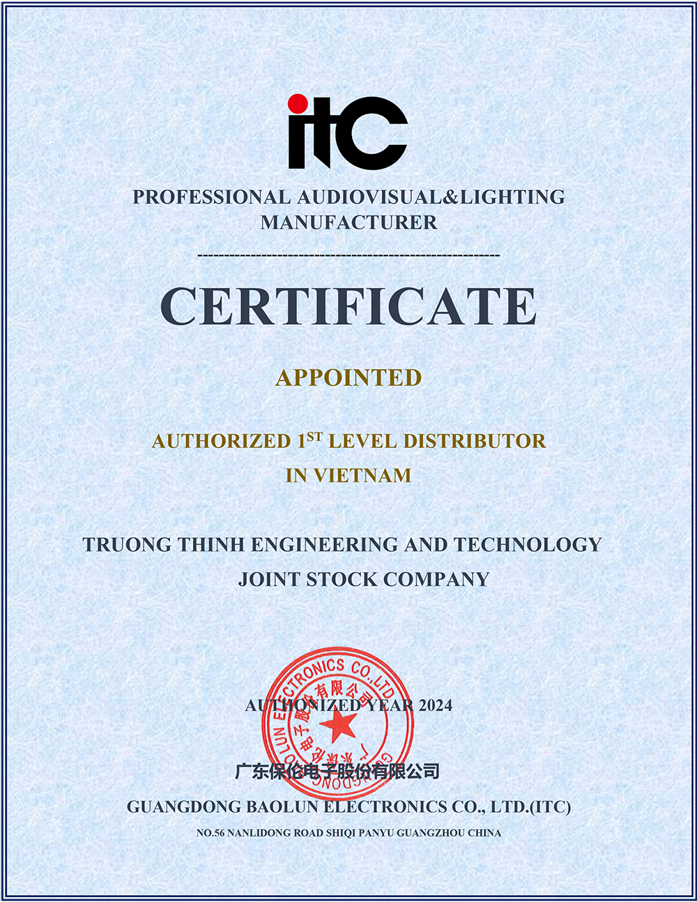 Trường Thịnh tự hào là nhà phân phối chính hãng của ITC và Honeywell tại Việt Nam về các sản phẩm âm thanh ánh sáng chuyên nghiệp. Chúng tôi cam kết mang đến cho khách hàng những sản phẩm chất lượng và dịch vụ hậu mãi tốt nhất.